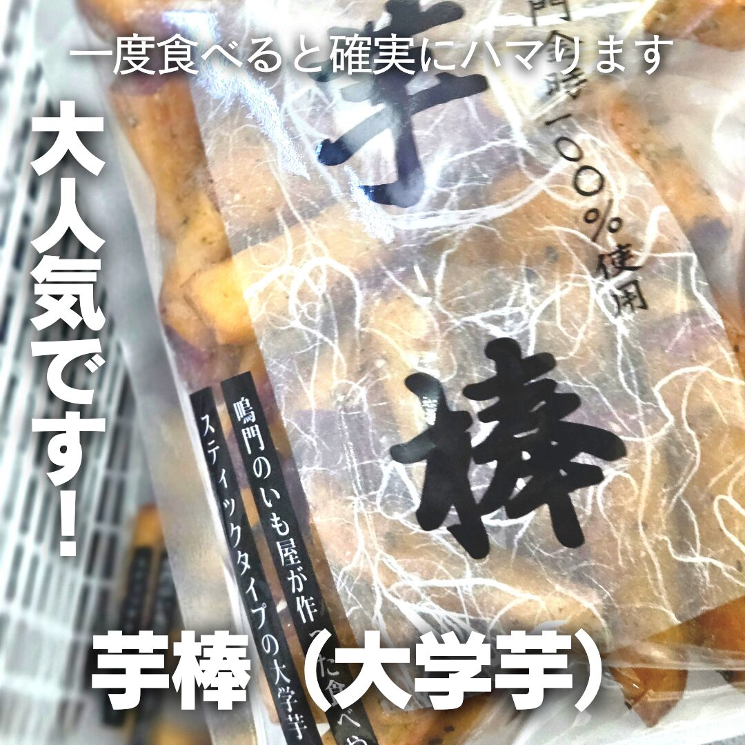 以前にこの会社の副社長がいらして、この大学芋は手作りで作ってるとのこと。。。本場徳島のさつまいも「鳴門金時」を100%使って作った大学芋。